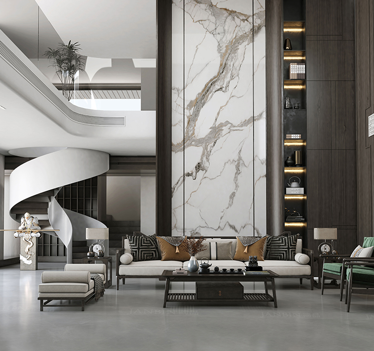 原石材是历经两亿多年才能孕育而成,是最古老的石材之一。清新的米灰色,搭载独特的闪电状金丝纹,舒适、雅致、淡然。
