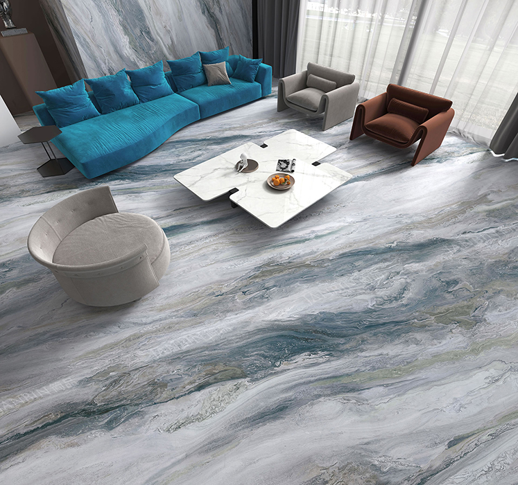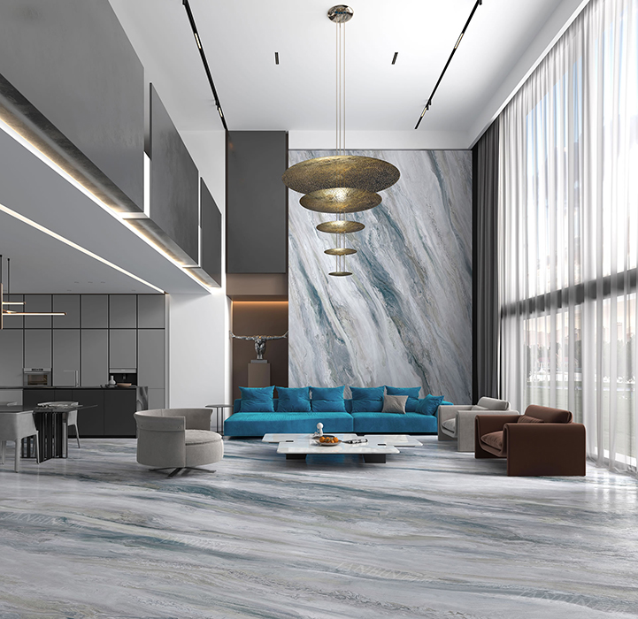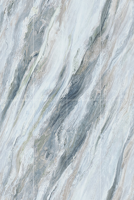 碧海伽蓝灵感源于意大利自然岩石形成的脉络,大片纹理自然流淌,宛若无尽大海之上的浪花,随性洒脱,迷离朦胧,为空间增加几抹生机。其清晰的纹理色彩撞击,让自由的因子活跃在瓷砖上,给空间带来自然灵动。大面积连纹效果还原石材的自然大气,置身其中亲自感受天然的赠与。