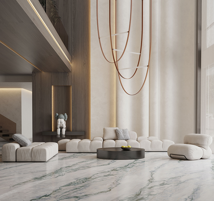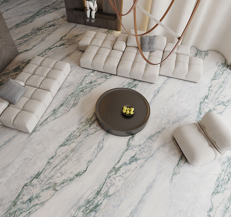 灵感源于宋代画,无论是线条还是色彩,自然而写意。清雅的纹理如水般汩汩流淌,勾勒出山石的脉络与质感,紫黛之上,苍、碧、靛、青层次自然过渡,营造出唯美,充满诗意的自然之美。
