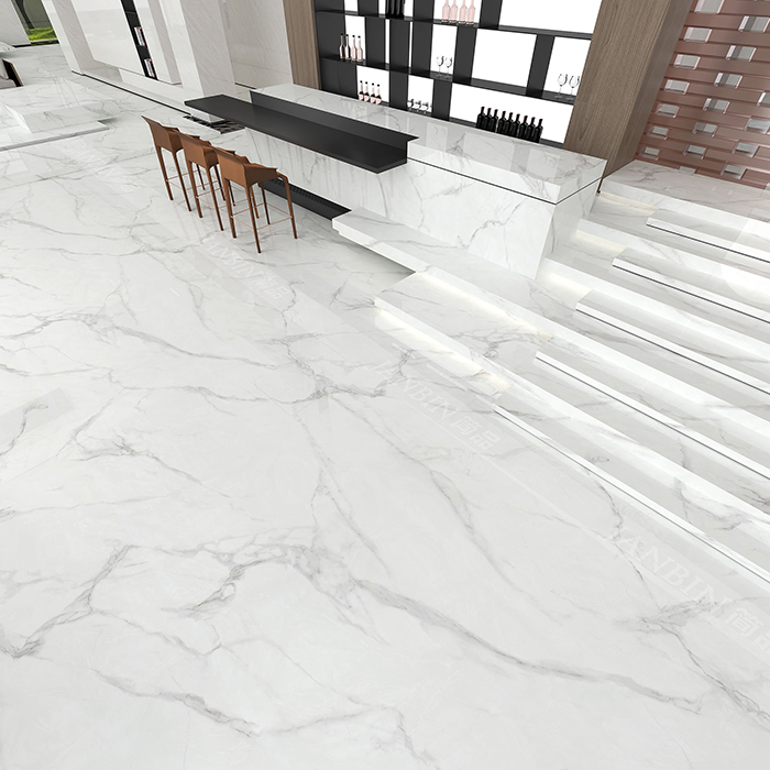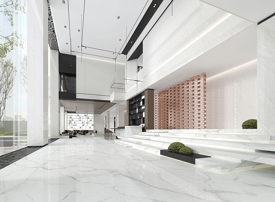 卡拉拉白开采于意大利,以自然雕刻的图案为特色,与顶级雪花白并称为罗马时期以来最受欢迎的室内装修用料。纹理犹如一幅山水画,很柔和,洁白通透,给人—种宽敞明亮的感觉,有书香气息。