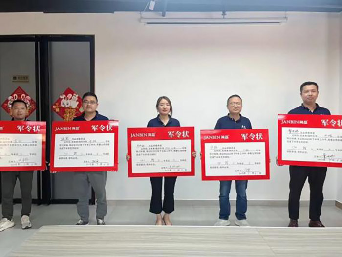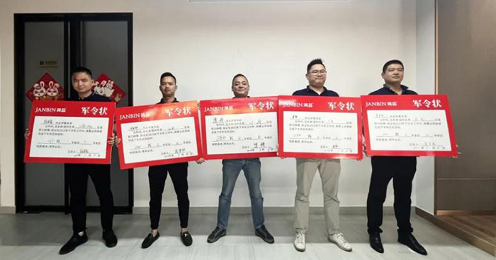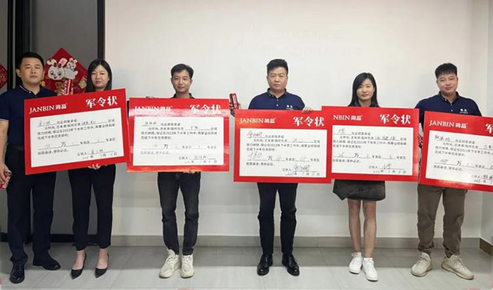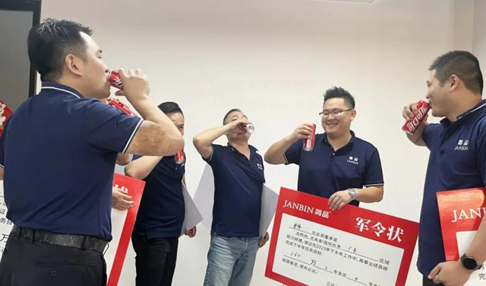 为了更好促进任务目标的完成,全体销售精英们签署军令状并当众宣誓,承诺必将坚定信念,砥砺奋进,使命必达,完成下半年任务目标。目标已立下,熊总与全体精英们共饮简品发财水,鼓励士气,集体合影,激情豪迈的状态振奋人心。