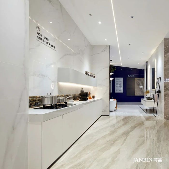 很多五星级酒店、高端住宅喜欢使用天然大理石,整体性强,高端大气,问题是大自然需要用千百年的时间才能孕育出天然大理石,不仅稀缺昂贵,开采还会破坏生态环境。简品大理石瓷砖,为达到石材装修效果,不管是在纹理和质感上,还是铺贴效果上,不断刷新自己的工艺技术。在远超国标品质的标准之上,实现密缝铺贴,连纹效果,让每一个爱家的人,都能够有一个最优解决方案。