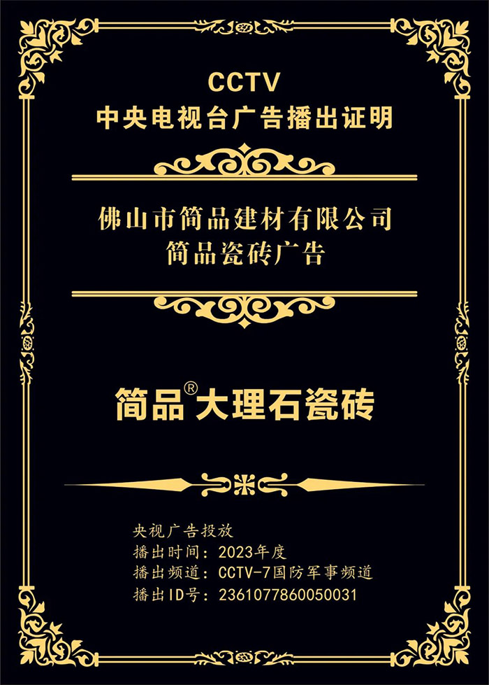 中央电视台作为唯一的国家级媒体传播的权威平台,其影响力更有着不容忽视的传播价值。这使得央视对于企业广告的投放有着严格的筛选标准,对投放的品牌、企业实力以及品牌美誉度有着苛刻的要求。此次简品大理石瓷砖能顺利登陆央视平台,不仅显示出简品大理石瓷砖产品的卓越品质,还彰显出简品大理石瓷砖强大的品牌潜力。