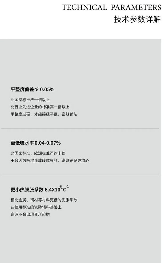 平整度、尺寸偏差、吸水率、热膨胀系数内控标准高
