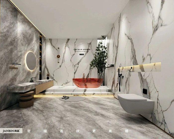 墙地连纹,密缝铺贴