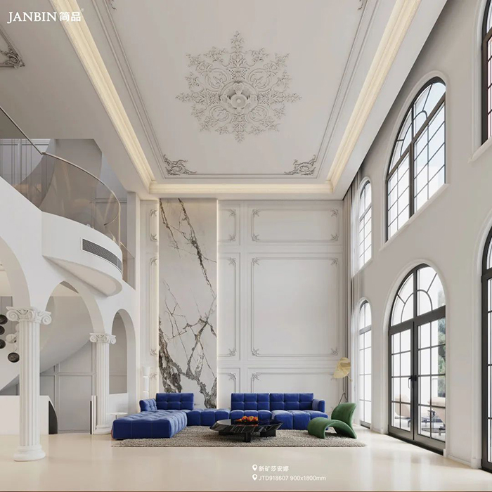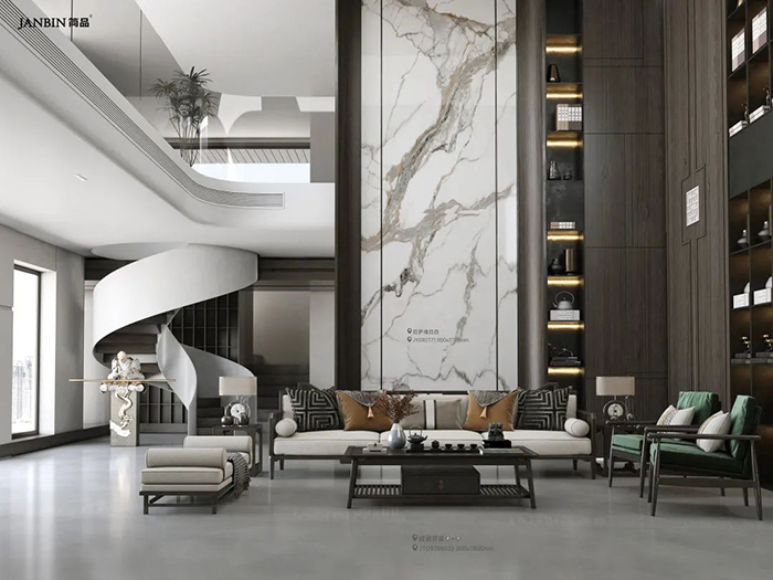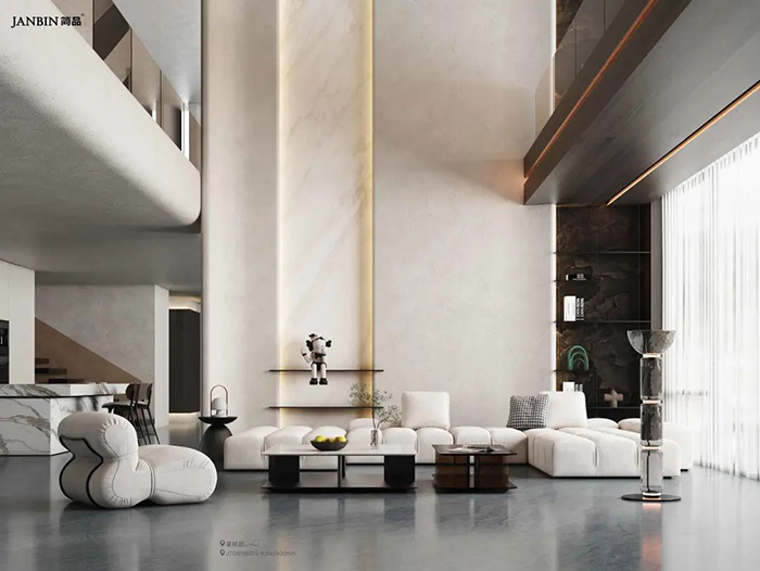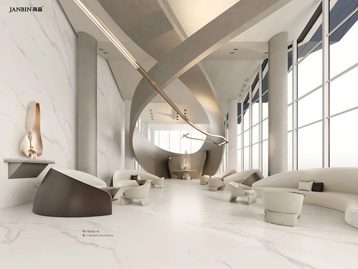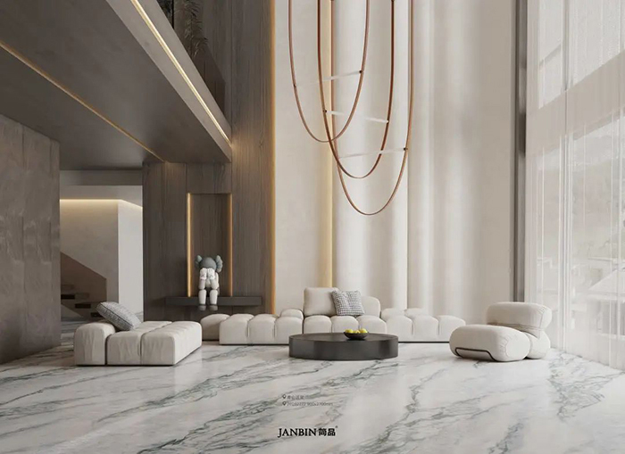 原石材有“石中明珠”的美誉,白得纯粹,高贵优雅。灰纹灵动,惊艳动人。犹如茫茫雪峰展露的山脊线、犹如泼墨绘画,酣畅而自然。给空间营造出纯净、优雅的氛围。