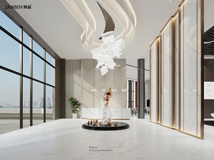 以纯净的白色为基调,搭配灵动飘逸的纹理,晶体质感纯净而通透,让空间显得开阔、宁静、舒适。