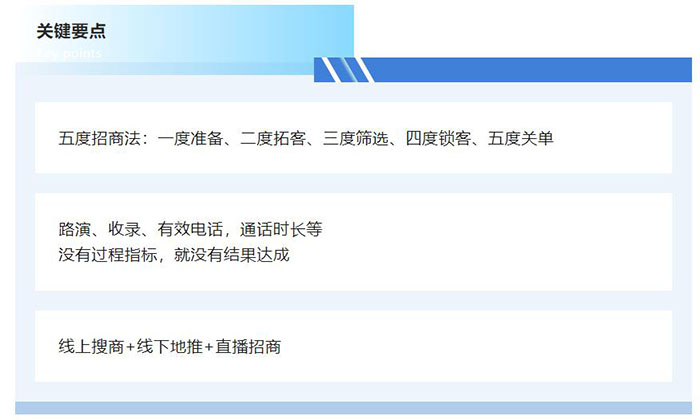 本次活动从销售团队内部集训,通关考试,作战地图规划,出差地推,电话回访,直播招商,签约转化,到最后的总结复盘,历时40多天。